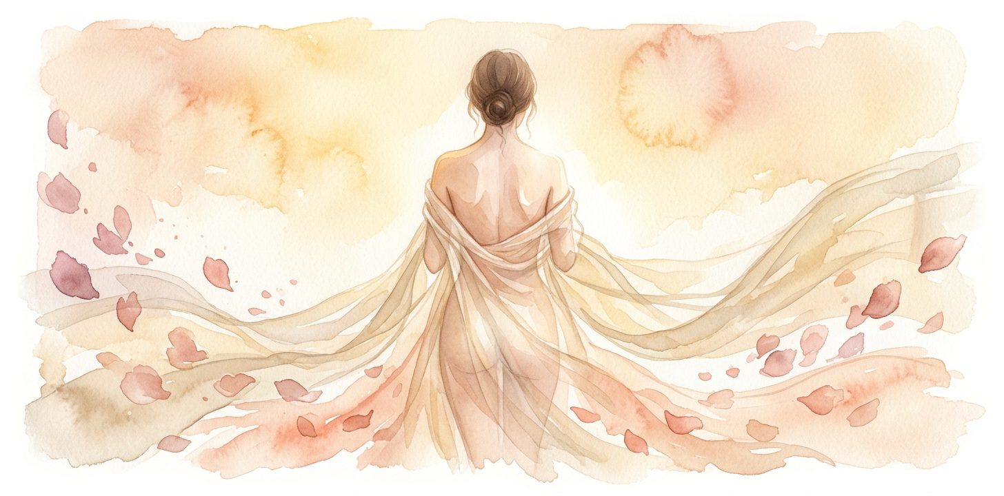 Aquí habla tu Rebelde Interior mediante el arquetipo de la liberación de los roles, esa parte que desea ir más allá de las definiciones impuestas. La desnudez intencionada es la imagen del rechazo a los roles y las máscaras. Es el «yo sin nada superfluo». La liberación del «qué dirán de mí» o del «cómo debo ser».