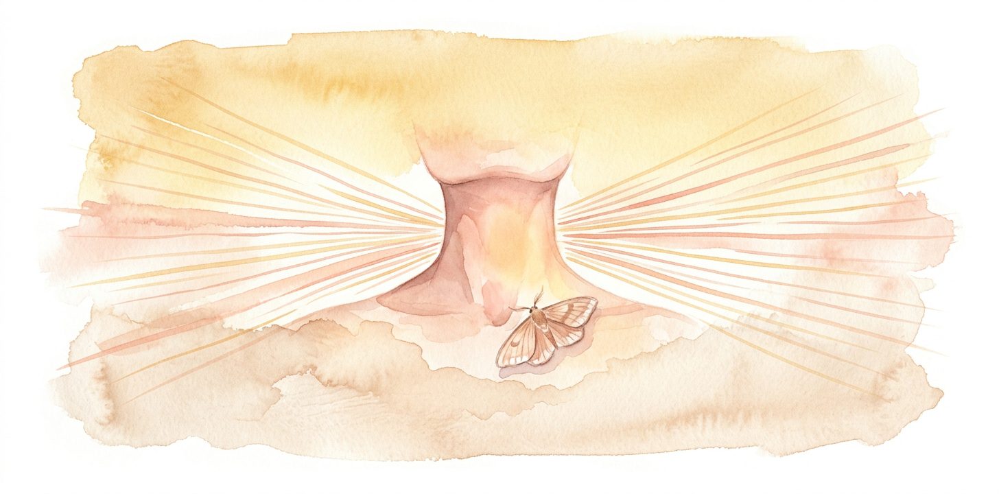 Nota astrológica: El dolor de garganta es imagen de Quirón o Mercurio en la casa 3, o de un tránsito de Quirón por la casa 3. Los Géminis y Tauro con Quirón en la casa 3 portan esta herida: el dolor de la expresión. Si ahora Quirón transita por tu casa 3, la voz requiere un trato cuidadoso.